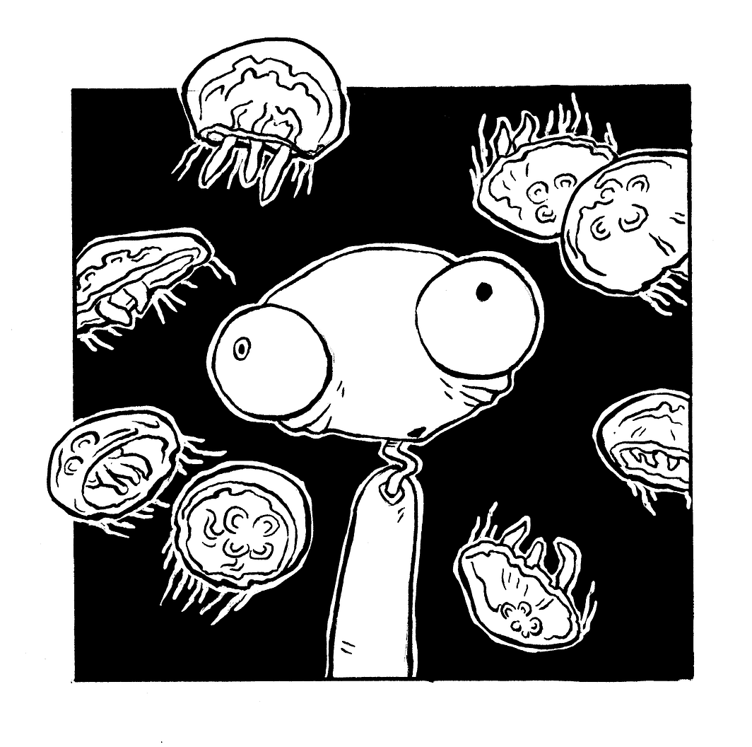 I started drawing Simon in early high school, though didn’t get his name until I was in college, at a time when I was listening to a lot of Simon and Garfunkle. He’s a weird little guy, with a tendency to find himself in weird situations.